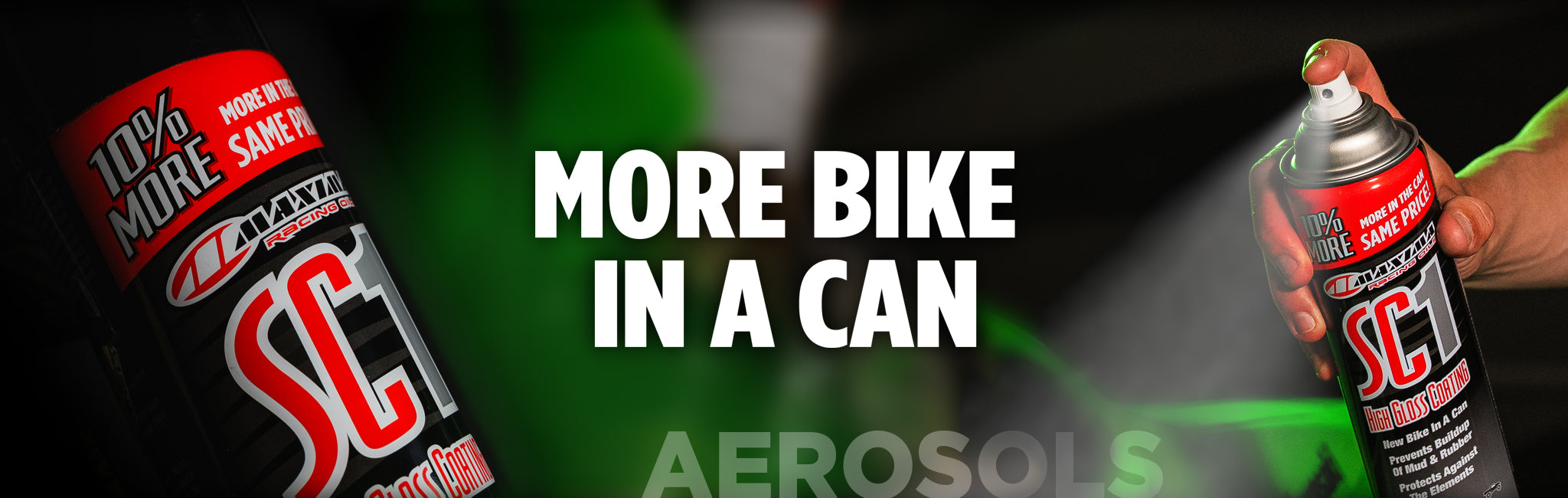 Maxima SC1 just got bigger, 10% more in the can for the same price. Need to restore and protect your plastics? Reach for Maxima’s famous SC1 high-gloss coating, which has been appropriately referred to as “New Bike in a Can™” due to its almost-magical ability to recondition your machine.